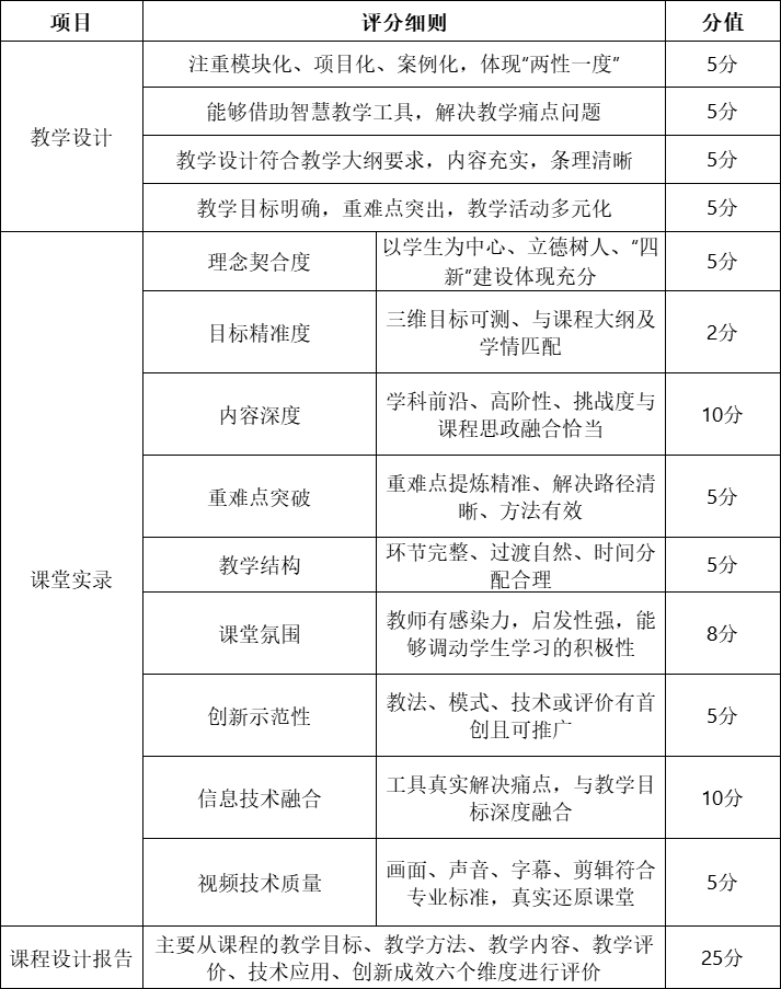 “慧教杯”全国高等院校教师教学能力大赛评分标准